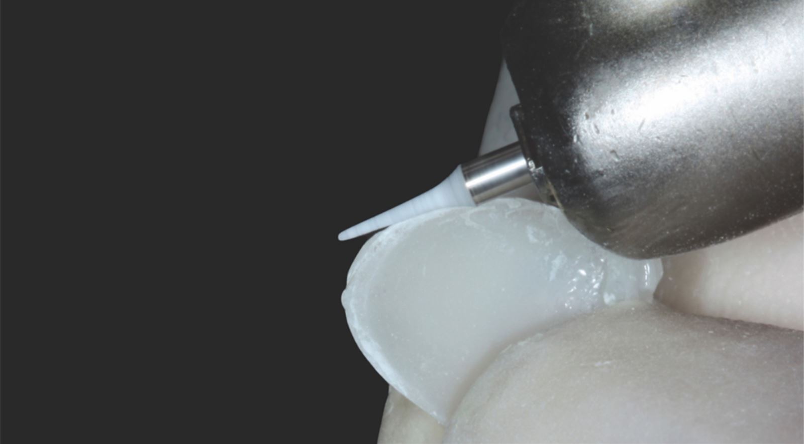 Fazety byly konturovány a vyleštěny pomocí lešticí sady Jiffy™ Natural, čímž byly připraveny k cementaci.
