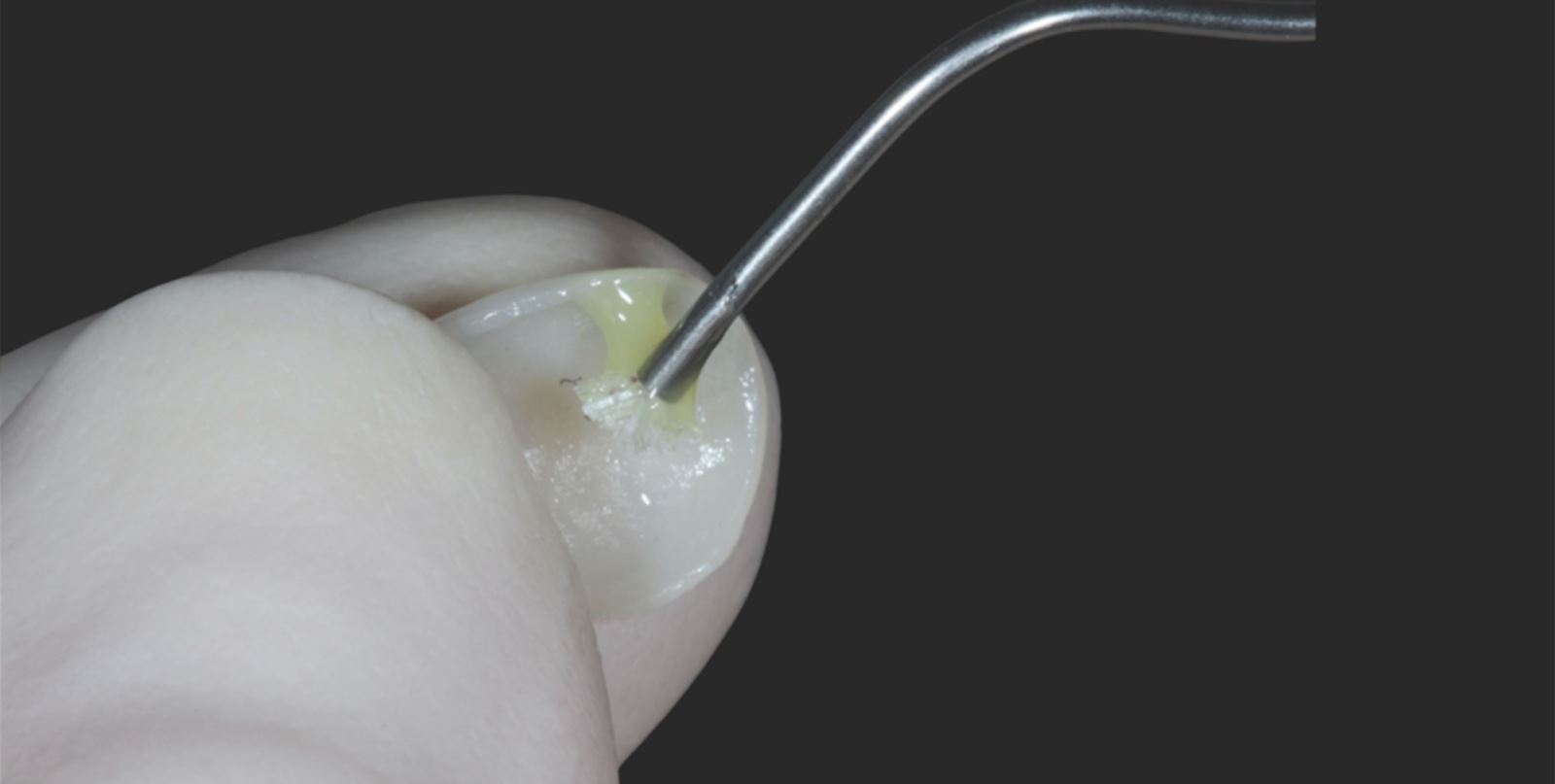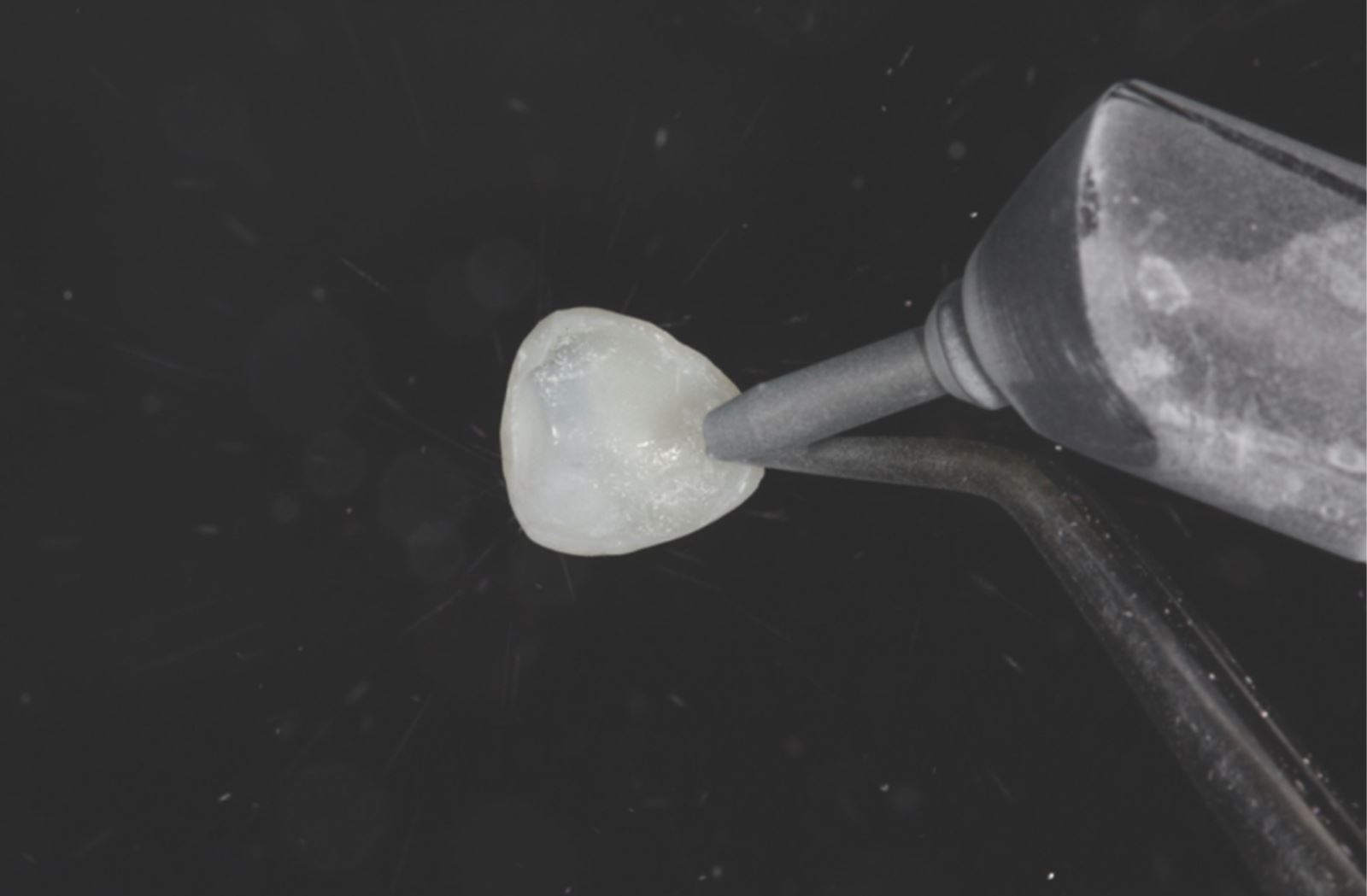 Vnitřní povrch fazety byl pískován. Alternativně lze pro tento krok použít 35% kyselinu fosforečnou Ultra-Etch™.