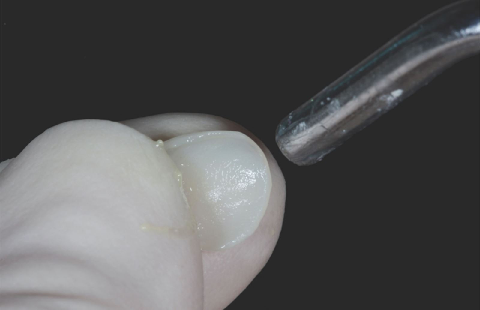 Vnitřní povrch fazety byl potažen adhezivem Peak™ Universal Bond.
