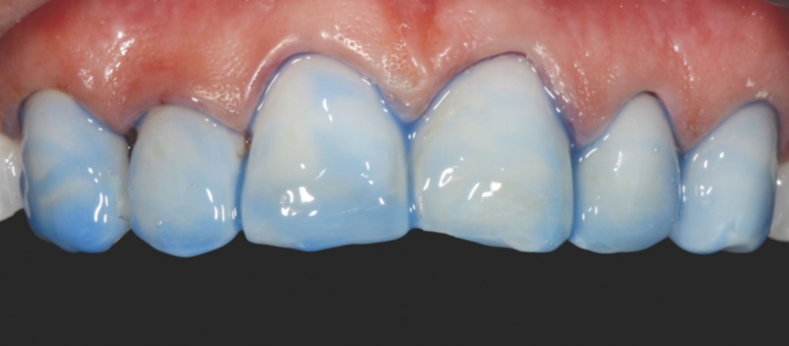 Fazety byly cementovány pomocí pryskyřičného cementu PermaShade™ LC v odstínu Translucent (není dostupný v Evropě).