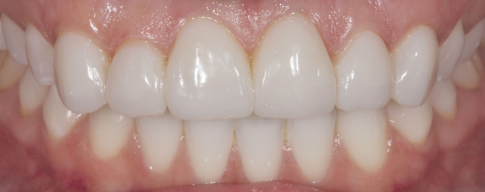 Mladá žena ve věku kolem 20 let, kterou trápila diskolorace horních frontálních zubů po dřívějším traumatu, vyhledala ošetření u Dr. Jaleeny Fischer-Jessop, DDS, MBA. Hledala řešení, které by obnovilo její úsměv. Pacientka byla ošetřena konzervativní a cenově dostupnou metodou: kompozitními fazetami bez preparace, přímým bondingem. Dr. Fischer-Jessop zvolila tento postup k překrytí diskolorace a sjednocení horních zubů s dolními frontálními – bez nutnosti invazivnějších výkonů, jako jsou implantáty, nebo nákladných laboratorně zhotovovaných fazet. Pro zesvětlení zubů byly vybrány odstíny B1D a Enamel White (EW) a odstín Universal Body (UB) kompozitu Transcend™ byl použit k přirozenému splynutí okraje v cervikálních oblastech.