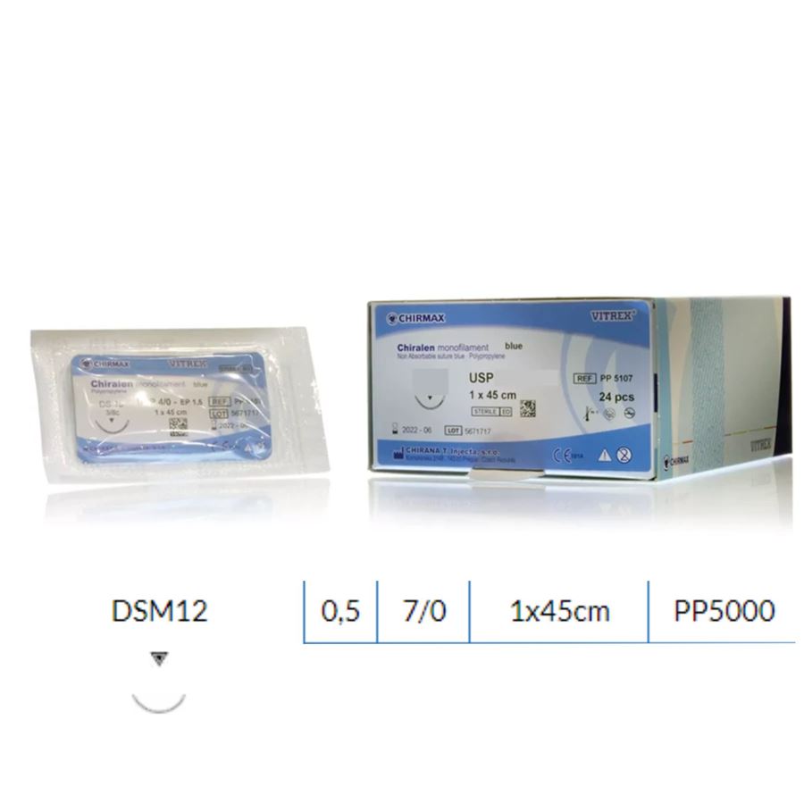 Chiralen monofil blue je syntetické, monofilní, nevstřebatelné polypropylenové vlákno hydrofobního charakteru, které nepodléhá hydrolytickému rozkladu. Chiralen má hladký neporézní povrch, jež zaručuje čistý a hladký průnik tkání, aniž by ji traumatizoval. Vlákno nevykazuje žádný kapilární efekt a je tudíž speciálně vhodné pro šití v infikovaném terénu.