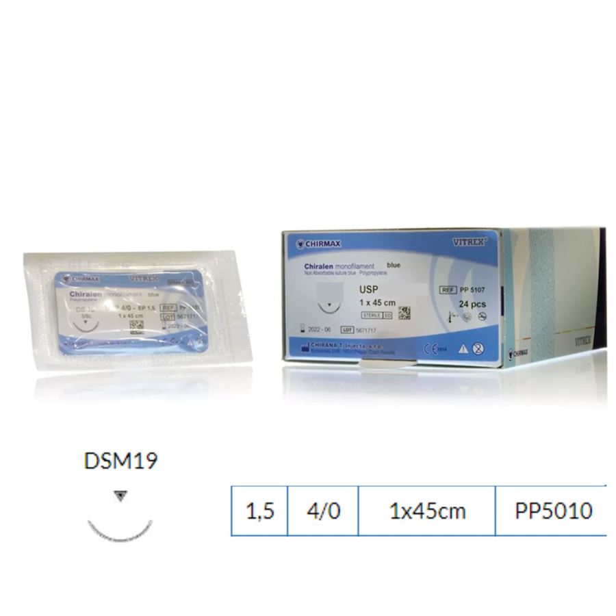 Chiralen monofil blue je syntetické, monofilní, nevstřebatelné polypropylenové vlákno hydrofobního charakteru, které nepodléhá hydrolytickému rozkladu. Chiralen má hladký neporézní povrch, jež zaručuje čistý a hladký průnik tkání, aniž by ji traumatizoval. Vlákno nevykazuje žádný kapilární efekt a je tudíž speciálně vhodné pro šití v infikovaném terénu.