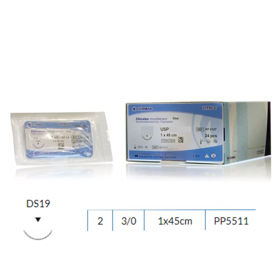 Chiralen monofil blue je syntetické, monofilní, nevstřebatelné polypropylenové vlákno hydrofobního charakteru, které nepodléhá hydrolytickému rozkladu. Chiralen má hladký neporézní povrch, jež zaručuje čistý a hladký průnik tkání, aniž by ji traumatizoval. Vlákno nevykazuje žádný kapilární efekt a je tudíž speciálně vhodné pro šití v infikovaném terénu.