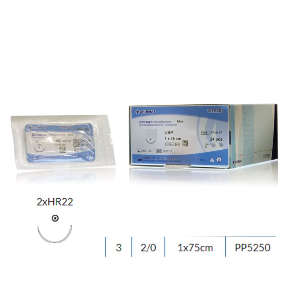 Chiralen monofil blue je syntetické, monofilní, nevstřebatelné polypropylenové vlákno hydrofobního charakteru, které nepodléhá hydrolytickému rozkladu. Chiralen má hladký neporézní povrch, jež zaručuje čistý a hladký průnik tkání, aniž by ji traumatizoval. Vlákno nevykazuje žádný kapilární efekt a je tudíž speciálně vhodné pro šití v infikovaném terénu.