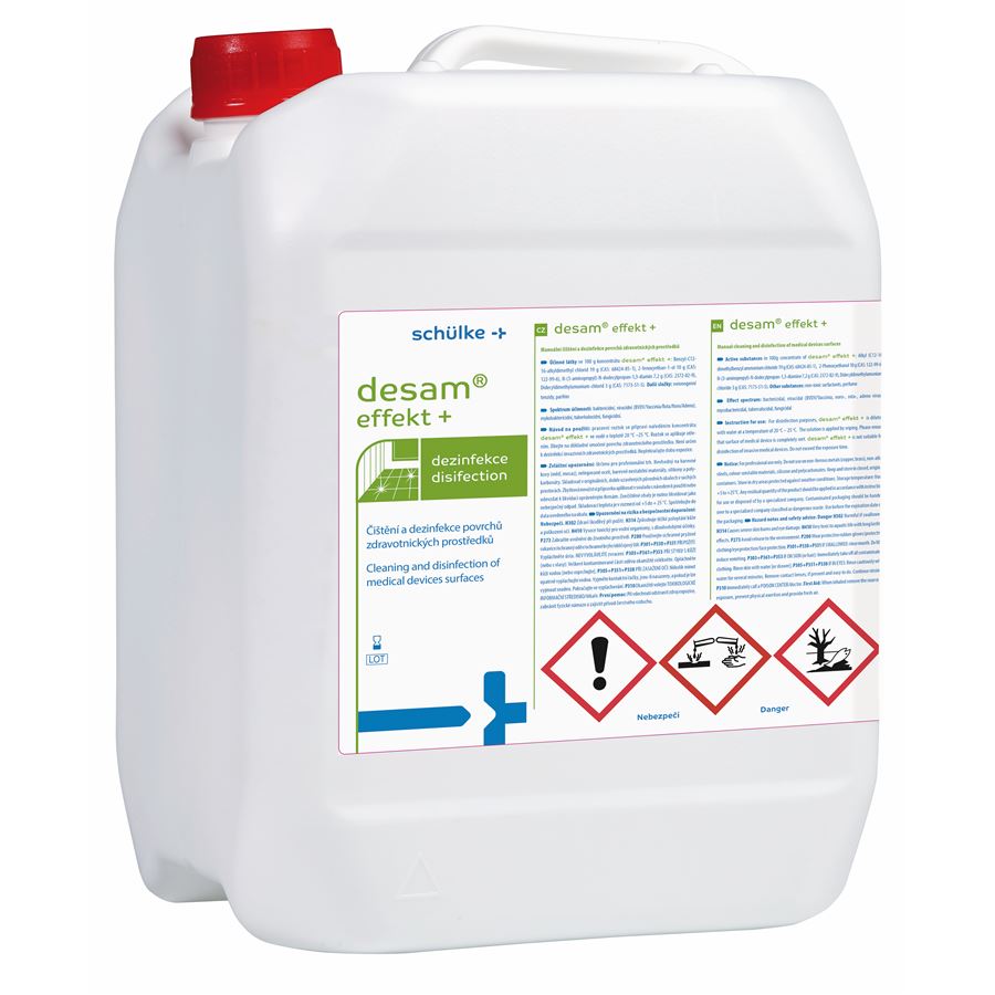 desam® effekt + je všestranný, účinný a ekonomický přípravek určený k dezinfekci a mytí povrchů zdravotnických prostředků. Je vhodný pro každodenní použití ve všech oblastech zdravotnictví, a to i v přítomnosti pacientů. Nedráždí dýchací cesty a vyniká širokou materiálovou kompatibilitou. Přípravek je kompatibilní s opakovaně plnitelným zásobníkovým systémem Schülke wipes.