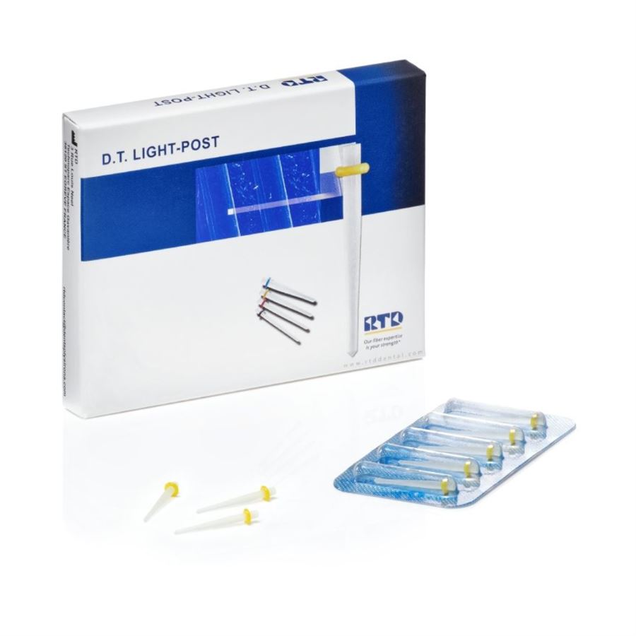 D.T. Light-Post je moderní skelný kořenový čep s vysokou pevností v ohybu, dobrou světelnou vodivostí a výraznou rentgenkontrastností. Díky dvojitě kónickému tvaru umožňuje šetrnější preparaci kořenového kanálku a pomáhá zachovat maximum zbývajícího dentinu. Modul elasticity blízký dentinu přispívá k mechanické kompatibilitě s přirozenou strukturou zubu a snižuje riziko fraktur kořene.