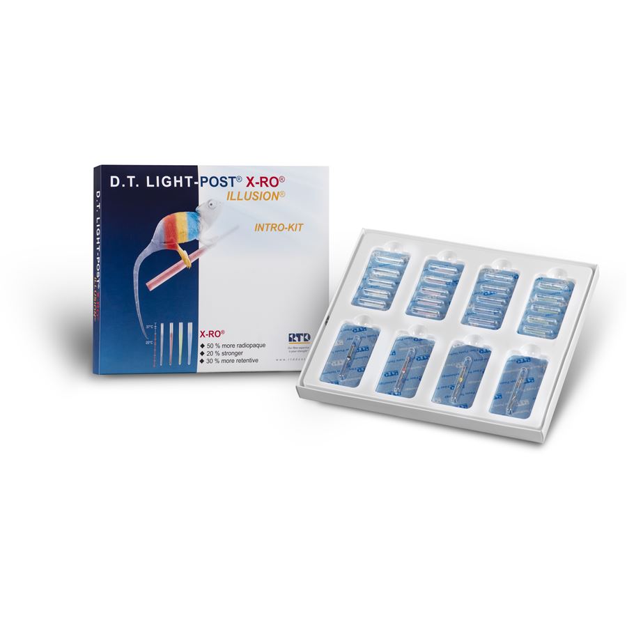D.T. Light-Post Illusion X-RO je vylepšený skelný kořenový čep určený pro rekonstrukci endodonticky ošetřených zubů. Využívá patentovaná vlákna X-RO, která zajišťují mimořádně vysokou pevnost v ohybu, a současně nabízí vysokou rentgenkontrastnost i velmi dobrou světelnou transmisi. Díky osvědčenému dvojitě kónickému tvaru se čep dobře přizpůsobuje preparovanému kořenovému kanálku a umožňuje šetrnější preparaci se zachováním maximálního množství dentinu.