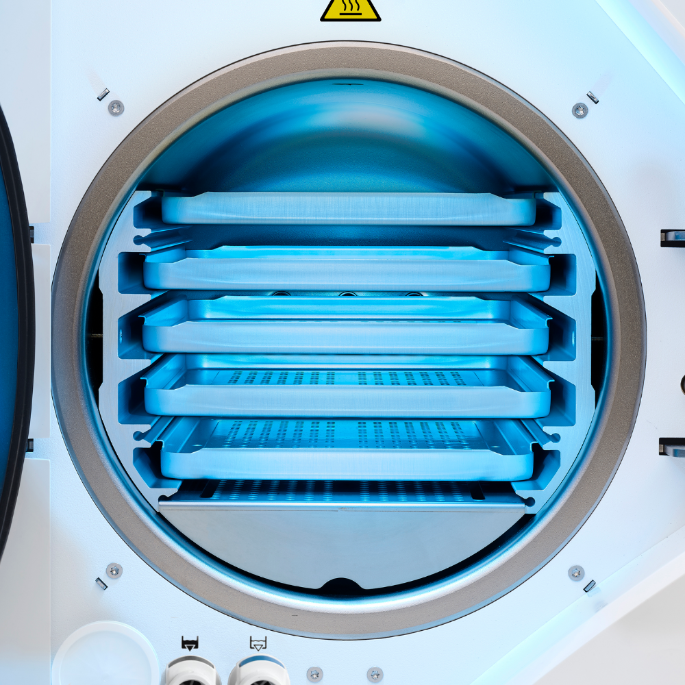 Komora autoklávu s 5 různými tácy byla navržena s ohledem na maximalizaci kapacity. DXPclave tak umožňuje využití opravdu celého 24litrového prostoru, který patří k největším ve své kategorii. Optimalizované sterilizační cykly spolu s velkou kapacitou přístroje tak významně zefektivňují práci.