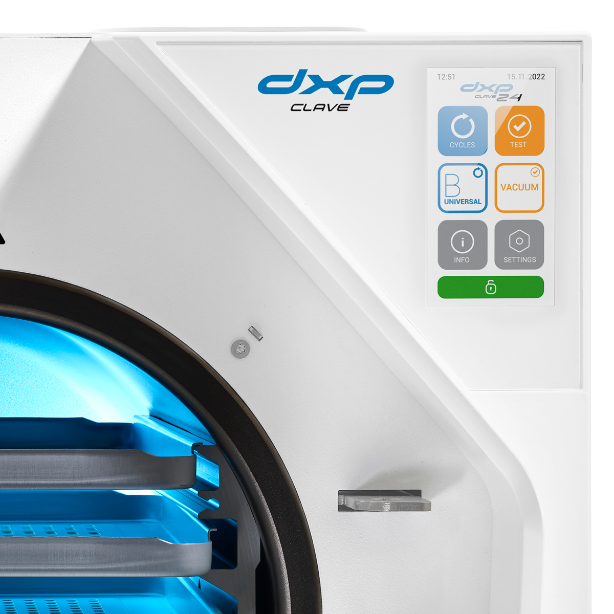Užívání DXPclave je velmi pohodlné díky 4,3" velkému dotykovému displeji a intuitivnímu uživatelskému prostředí je nastavení přístroje jednoduché a rychlé což usnadňuje práci každnému profesionálovi