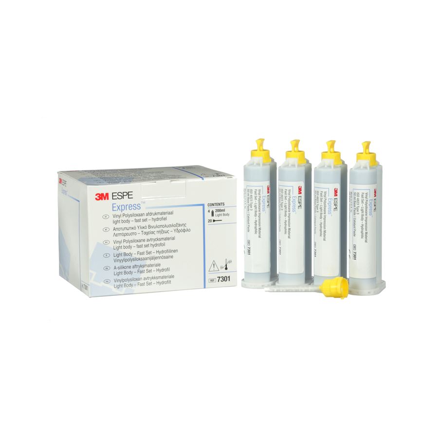 3M™ Express™ VPS je otiskovací materiál na bázi vinylpolysiloxanu pro ruční míchání. Je určený pro jednokrokovou i dvoukrokovou techniku putty/wash. V praxi oceníte spolehlivé zpracování, přesné vykreslení detailů a možnost zvolit si postup, který Vám vyhovuje.