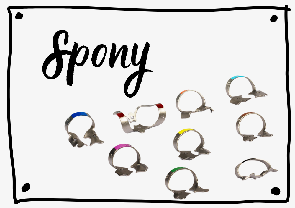 Spony Brinker mají navíc šikmo skloněné čelisti, které zajišťují maximální retrakci dásně bez poranění gingiválních tkání.