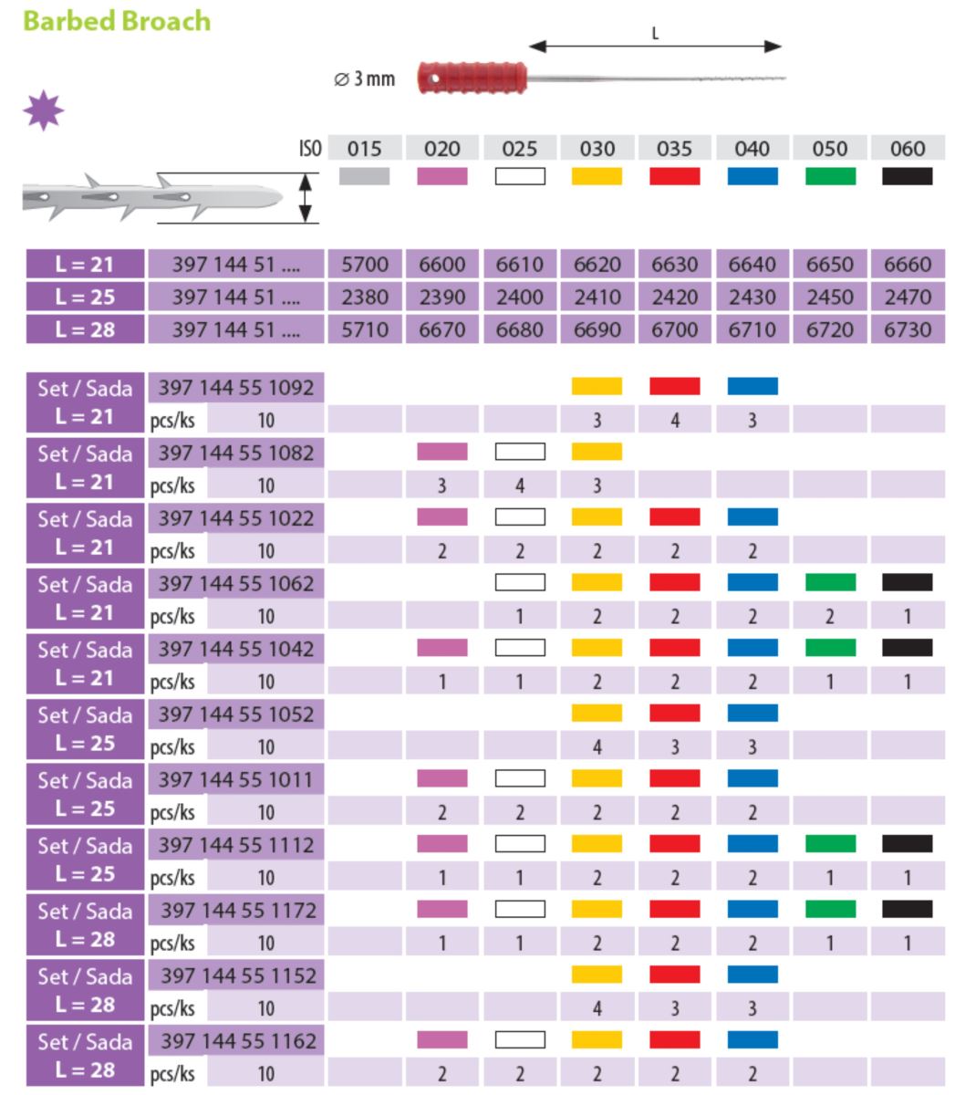 Jehla dřeňová Barbed Broach 030-040 L=25mmNe268,29 Kč