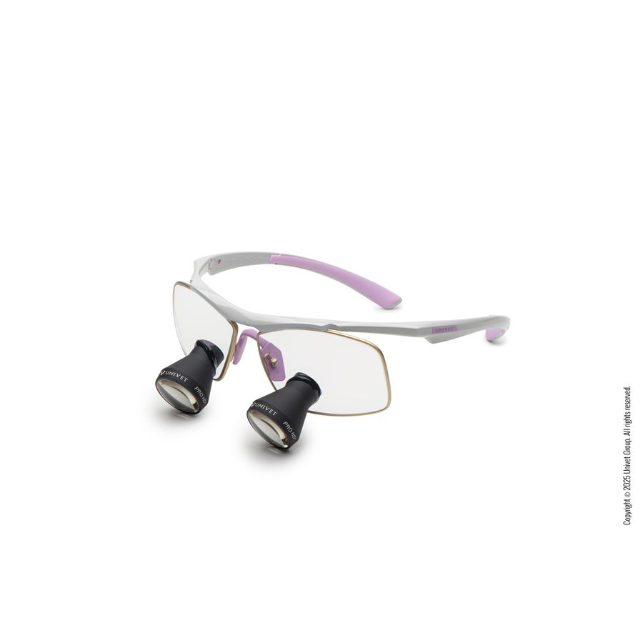 U zvětšovacího systému je rozložení hmotnosti jednou z nejdůležitějších specifikací. Společnost Univet navrhuje a vytváří obroučky s rovnoměrně rozloženou hmotností, které co nejefektivněji obepínají hlavu uživatele, což znamená zvýšené pohodlí i při dlouhodobém používání.