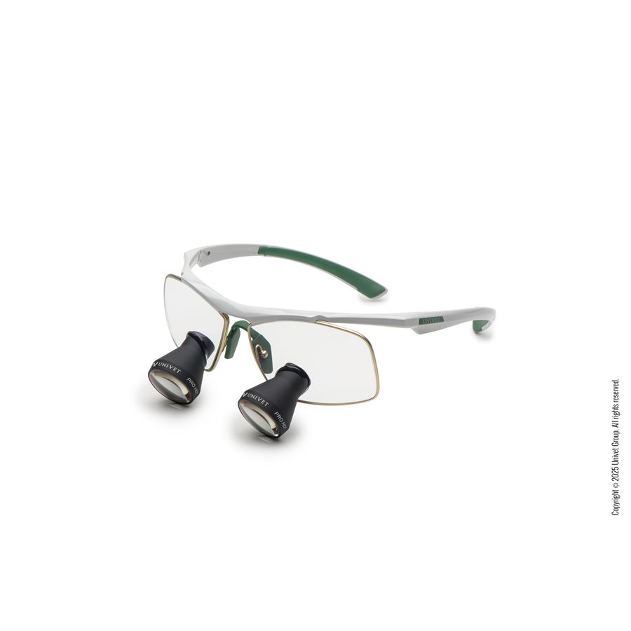 U zvětšovacího systému je rozložení hmotnosti jednou z nejdůležitějších specifikací. Společnost Univet navrhuje a vytváří obroučky s rovnoměrně rozloženou hmotností, které co nejefektivněji obepínají hlavu uživatele, což znamená zvýšené pohodlí i při dlouhodobém používání.