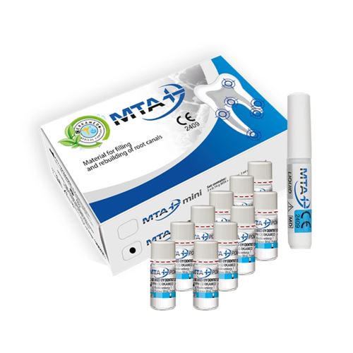 MTA+ je endodontický materiál určený k výplni a obnově kořenových kanálků. Díky vysokému obsahu vápenatých iontů podporuje remineralizaci tvrdých zubních tkání a napomáhá hojení v případech, kdy je třeba spolehlivě ošetřit komplikované endodontické situace. Materiál je rentgenokontrastní a splňuje požadavky normy EN ISO 6876.