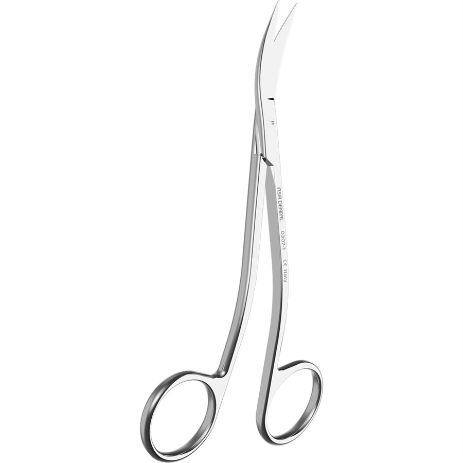 Chirurgické nůžky LaGrange se zahnutými pracovními částmi a jedním vroubkovaným ostřím jsou určeny pro přesnou a kontrolovanou práci. Vroubkování na jednom ostří napomáhá jistějšímu uchopení stříhaného materiálu a omezuje jeho sklouzávání během výkonu.