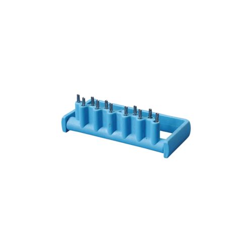 Držák vrtáčků pro ultrazvukové čištění – 4 otvory RA a 8 otvorů FG. Blok lze používat otevřený i zavřený. Autoklávovatelný.Parametry Rozměry: 7,5 × 3,5 × 1,2 cm Materiál: polyamid Balení: 1 ks